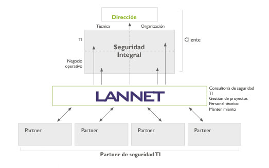 La seguridad para Lannet va más allá de las tecnologías de la información, ya que concierne a todos los ámbitos de la empresa. Nuestra concepción de seguridad no se reduce a productos aplicables a áreas concretas, sino a una política de empresa que exige soluciones desde la tecnología de la información hasta el esquema operativo.